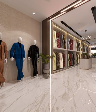 A luxurious wedding wear store where tradition meets modern elegance in a beautifully curated space.